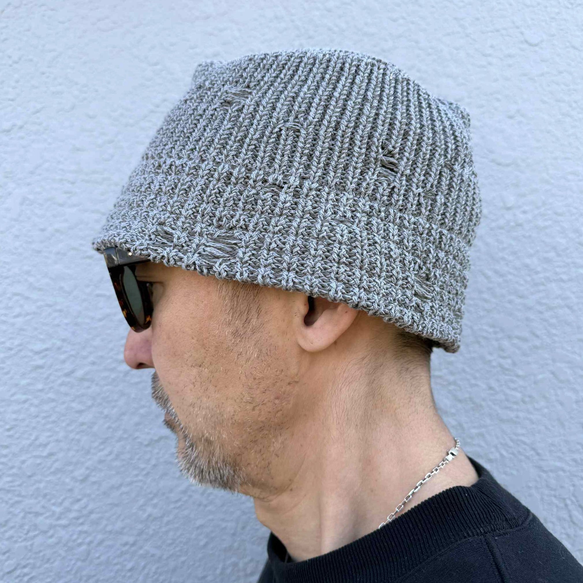RACAL - DAMAGE KNIT BUCKET HAT - GREY