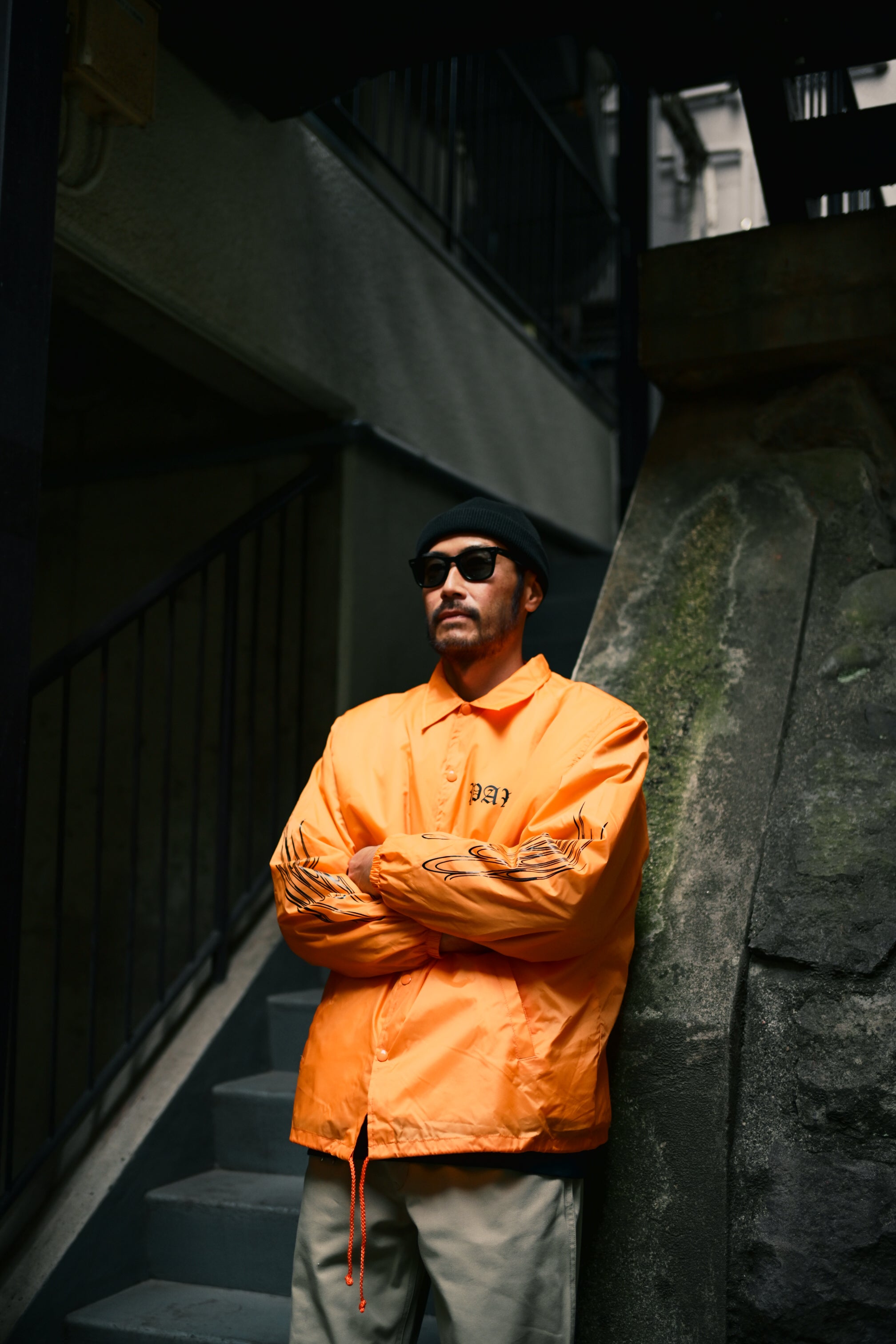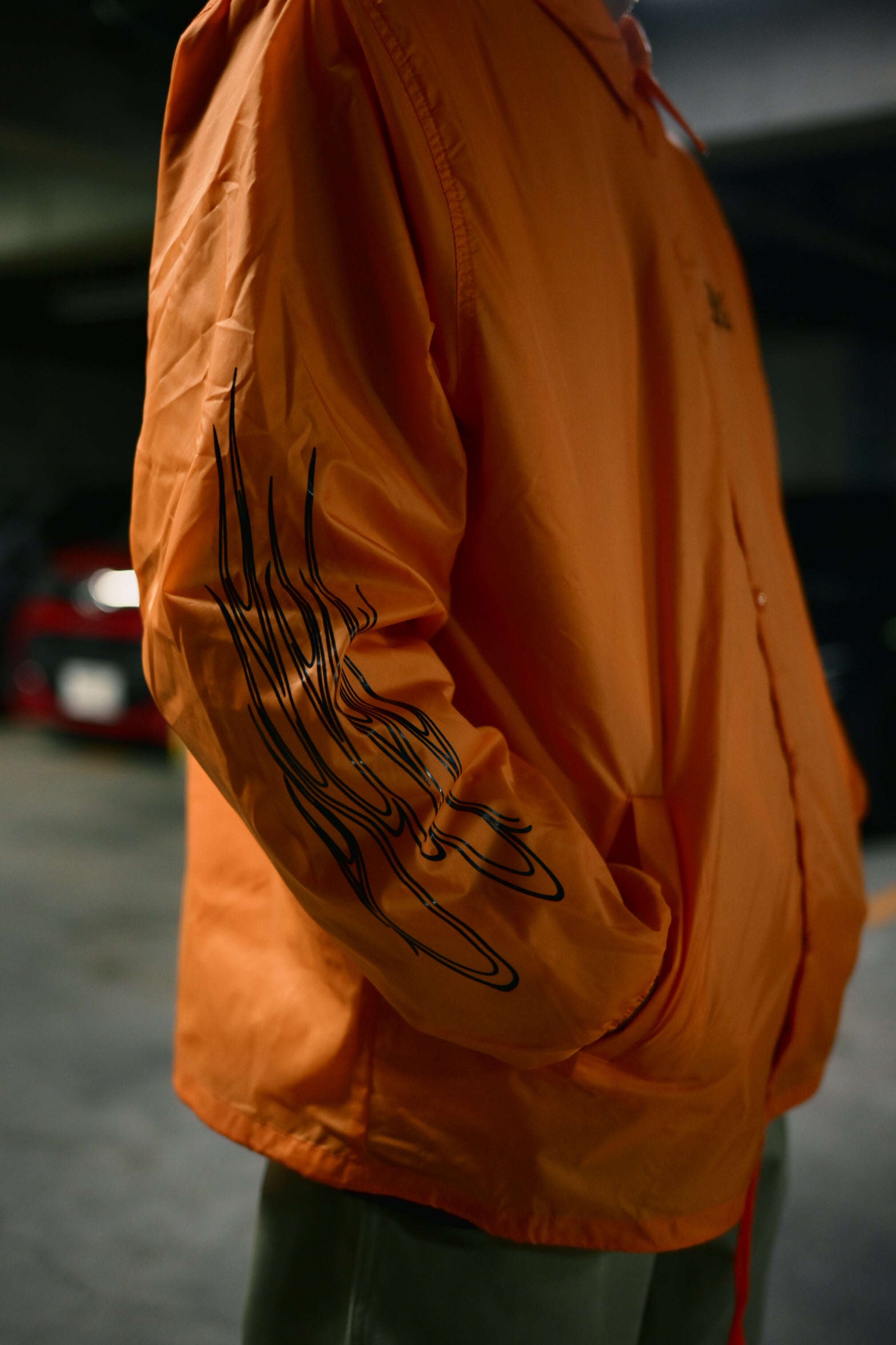 袖にはオリジナルFlamesを使用した男らしいストリートライクなナイロン内ボアコーチジャケット。
