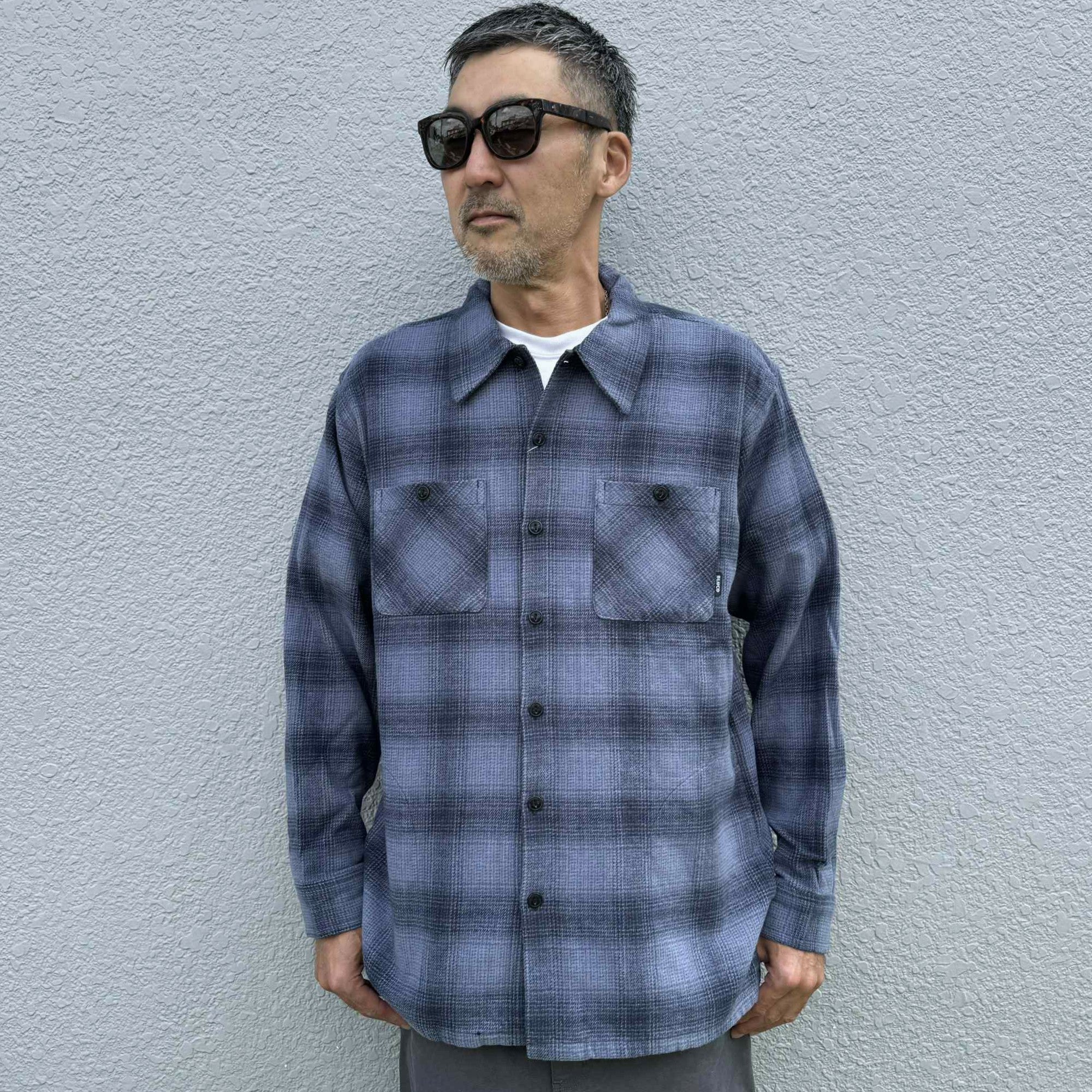 先染めで作成したオンブレーチェックのネルシャツです。