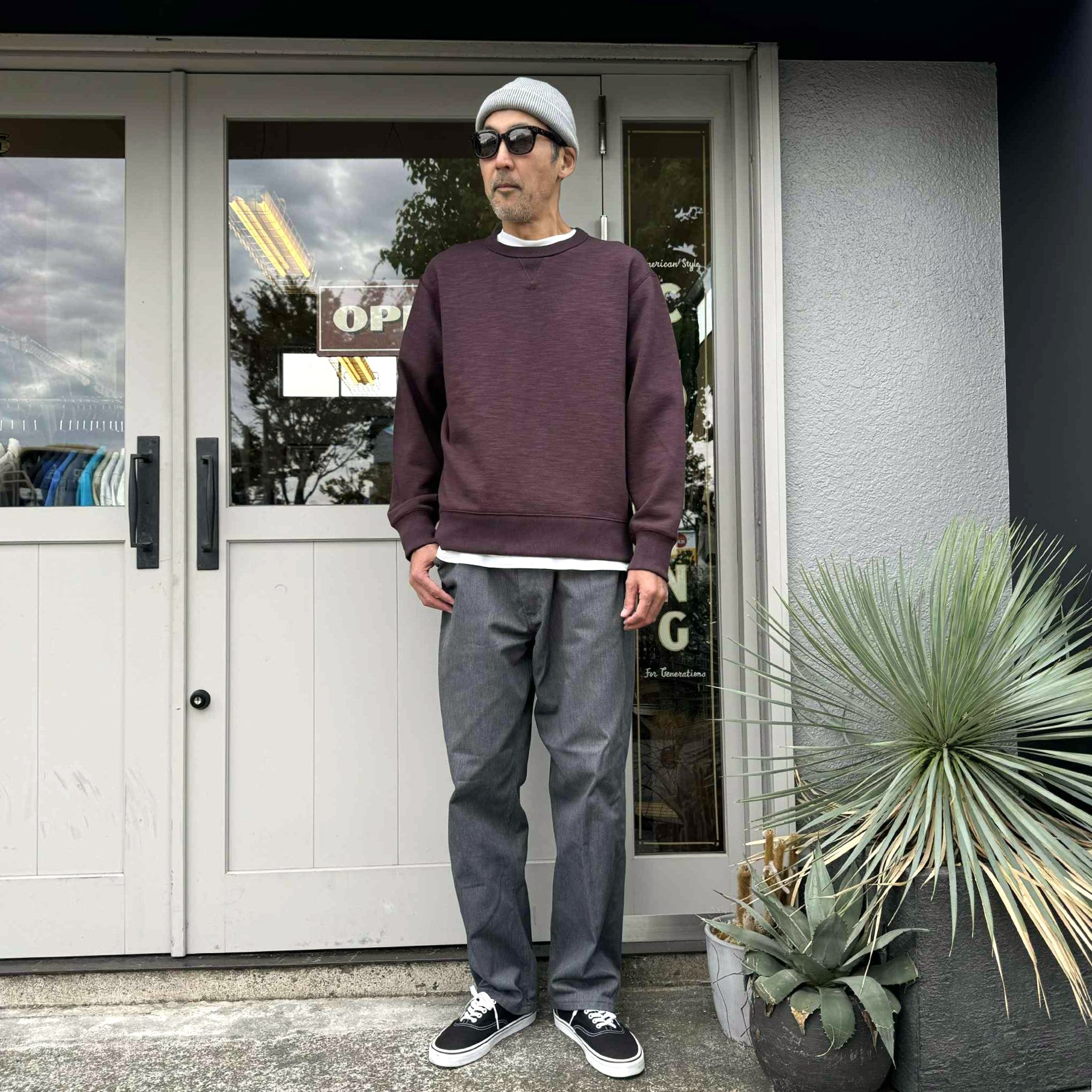 頑丈で着込むほどに愛着が湧くスウェットシャツです。
