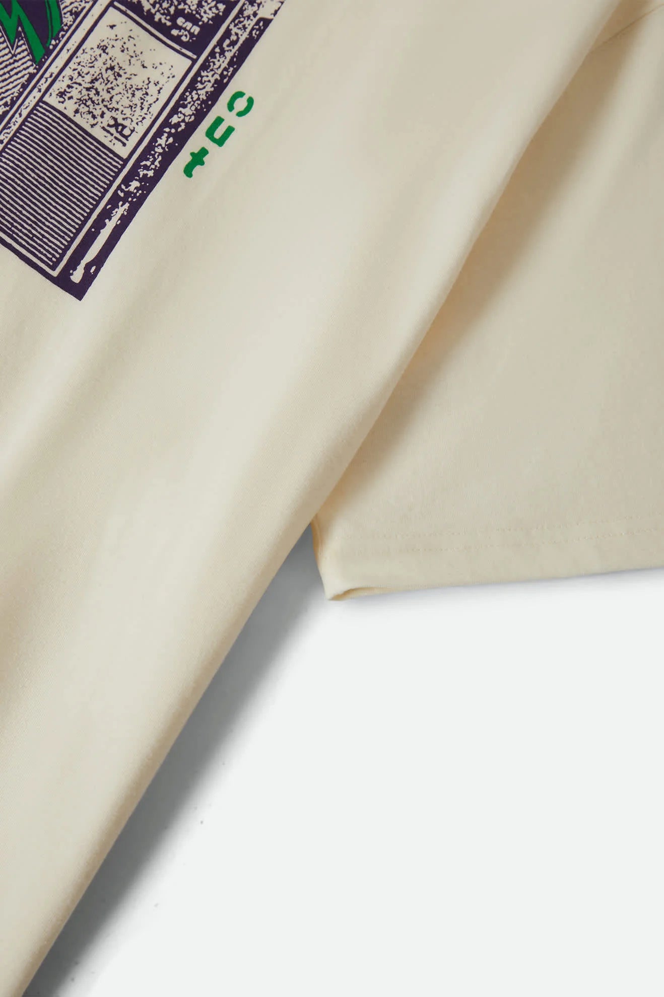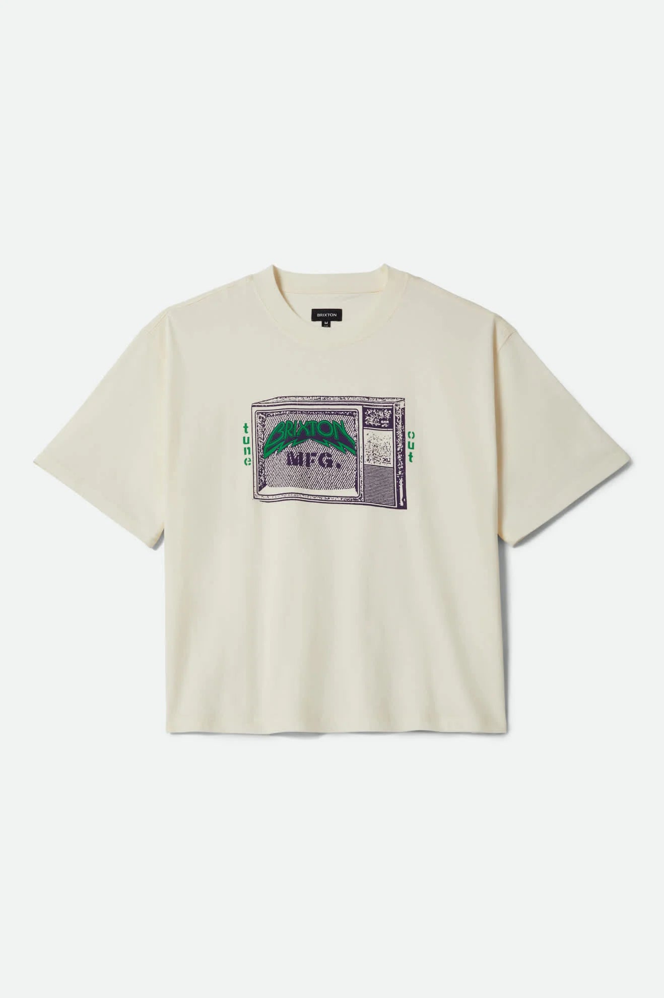 前面にはディアリングされたレトロなテレビスクリーンプリントが