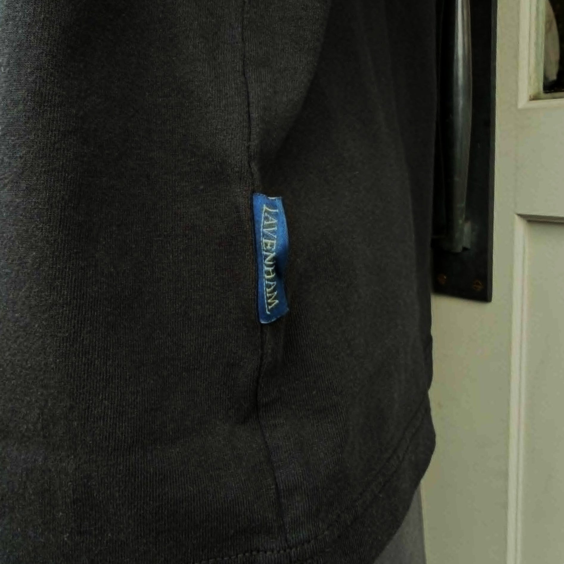 首元のリブは伸び切るのを防止するため