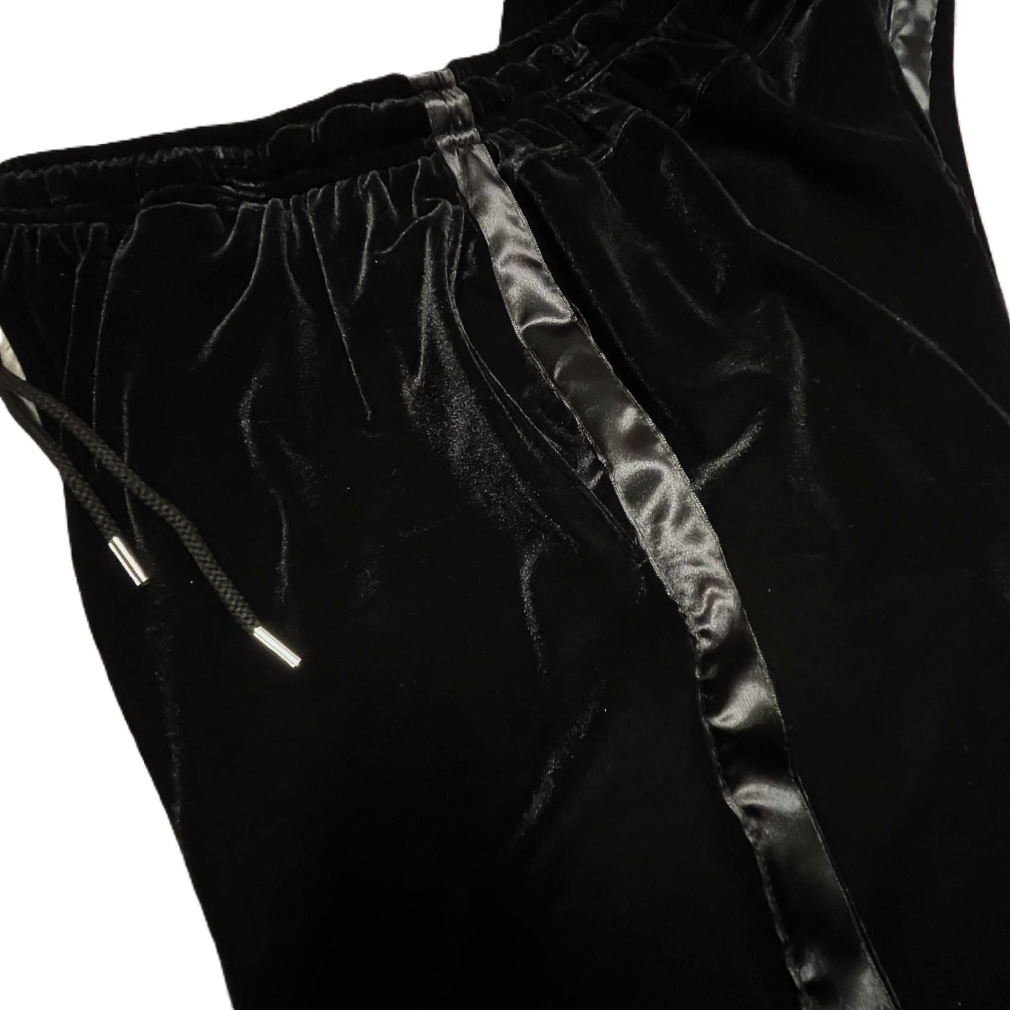 サテンテープの側章がドレッシーな印象を与えるトラックパンツ。