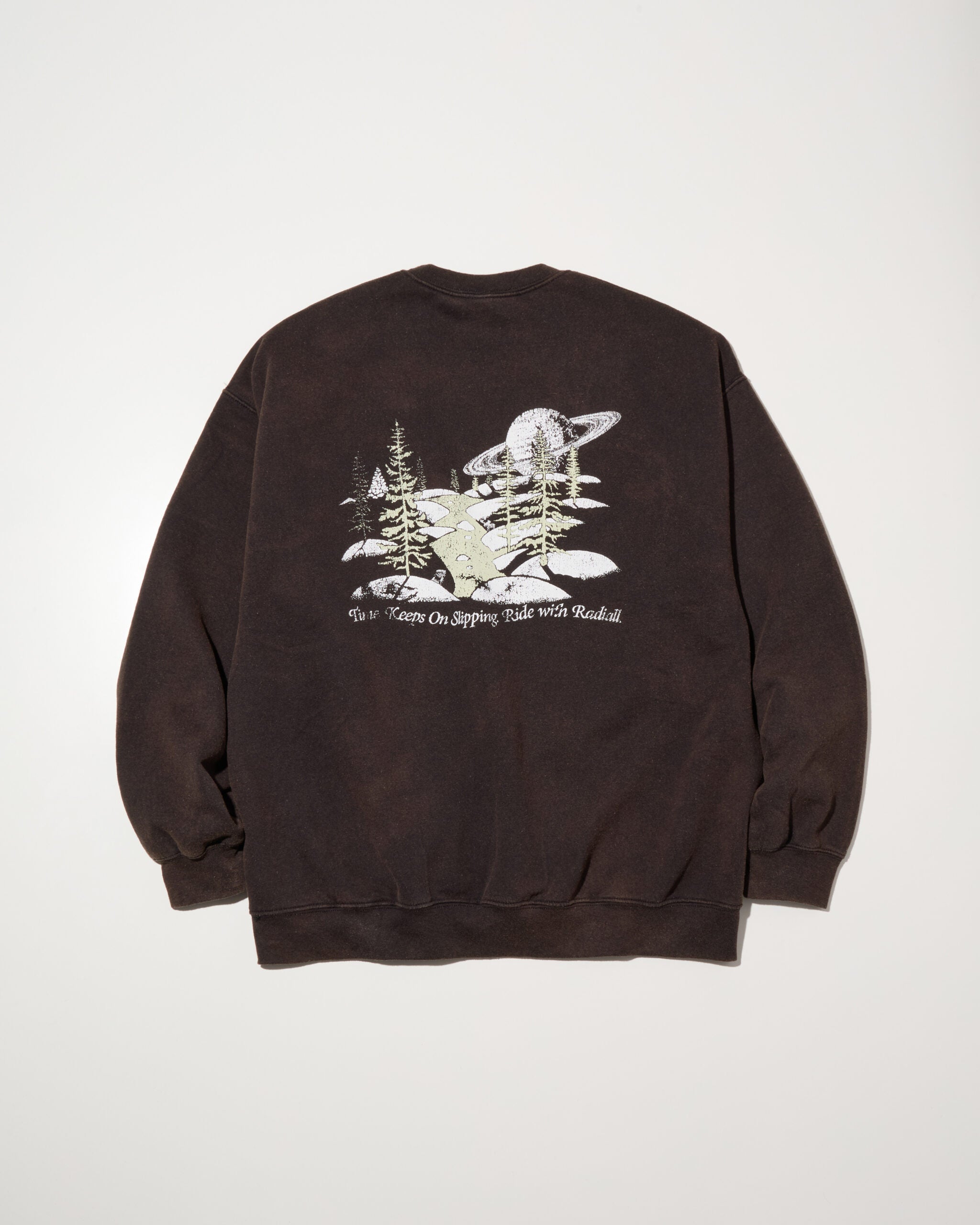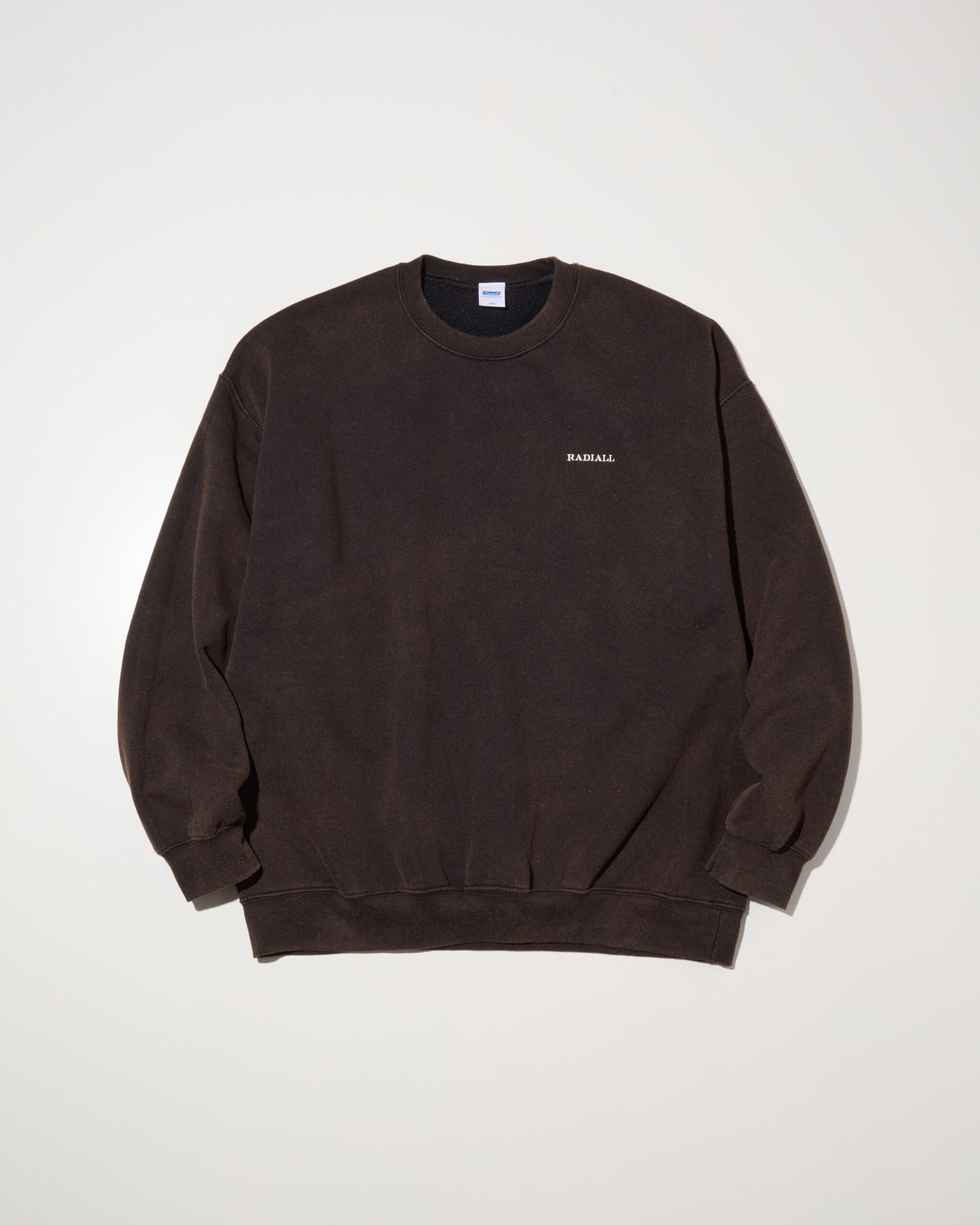 ミストブリーチ加工を施した裏起毛クルーネックスウェット。