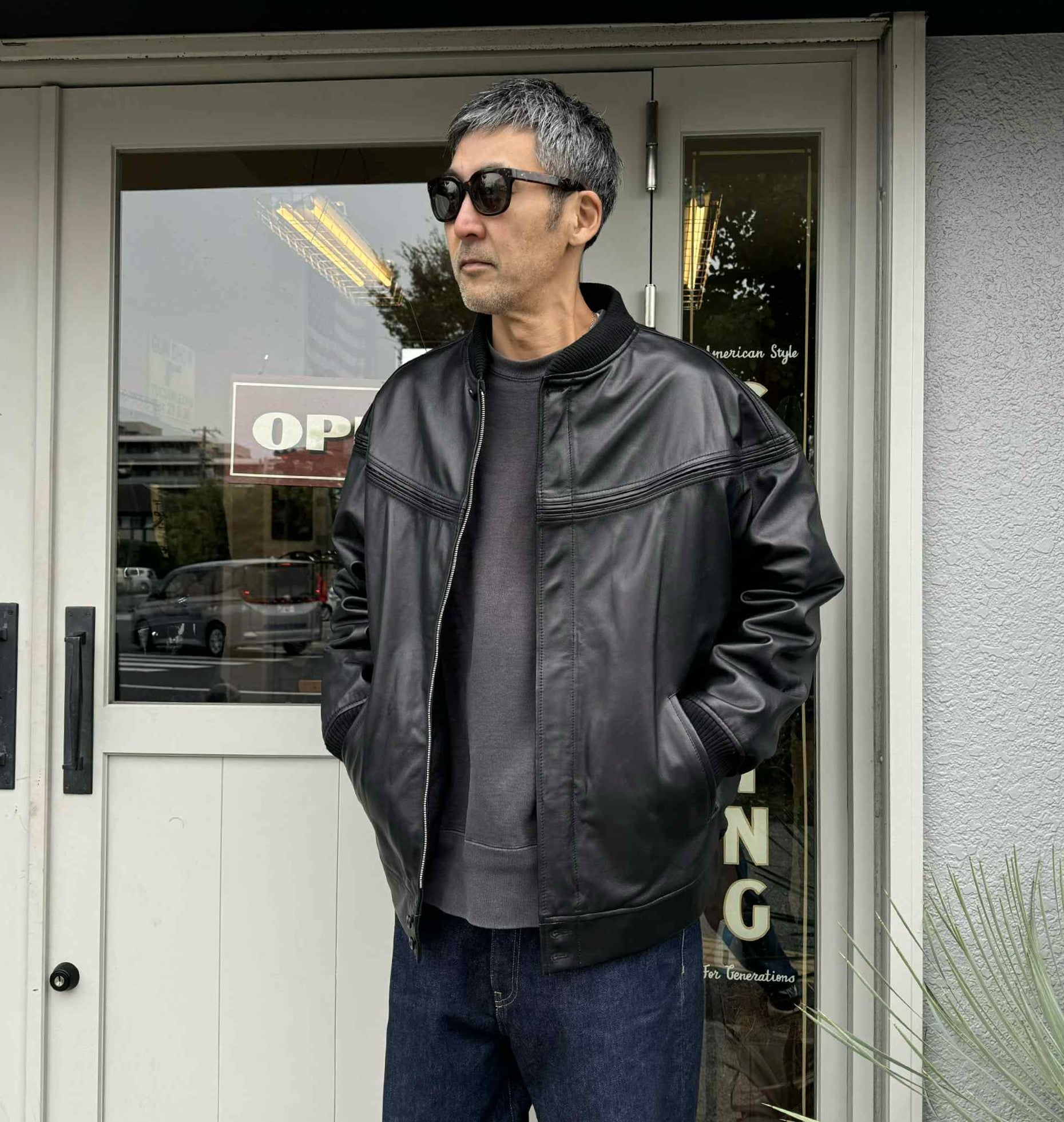・レザー特有の重厚感のある見た目に反して、軽く滑らかなため、落ち感も楽しめる素材となっています。