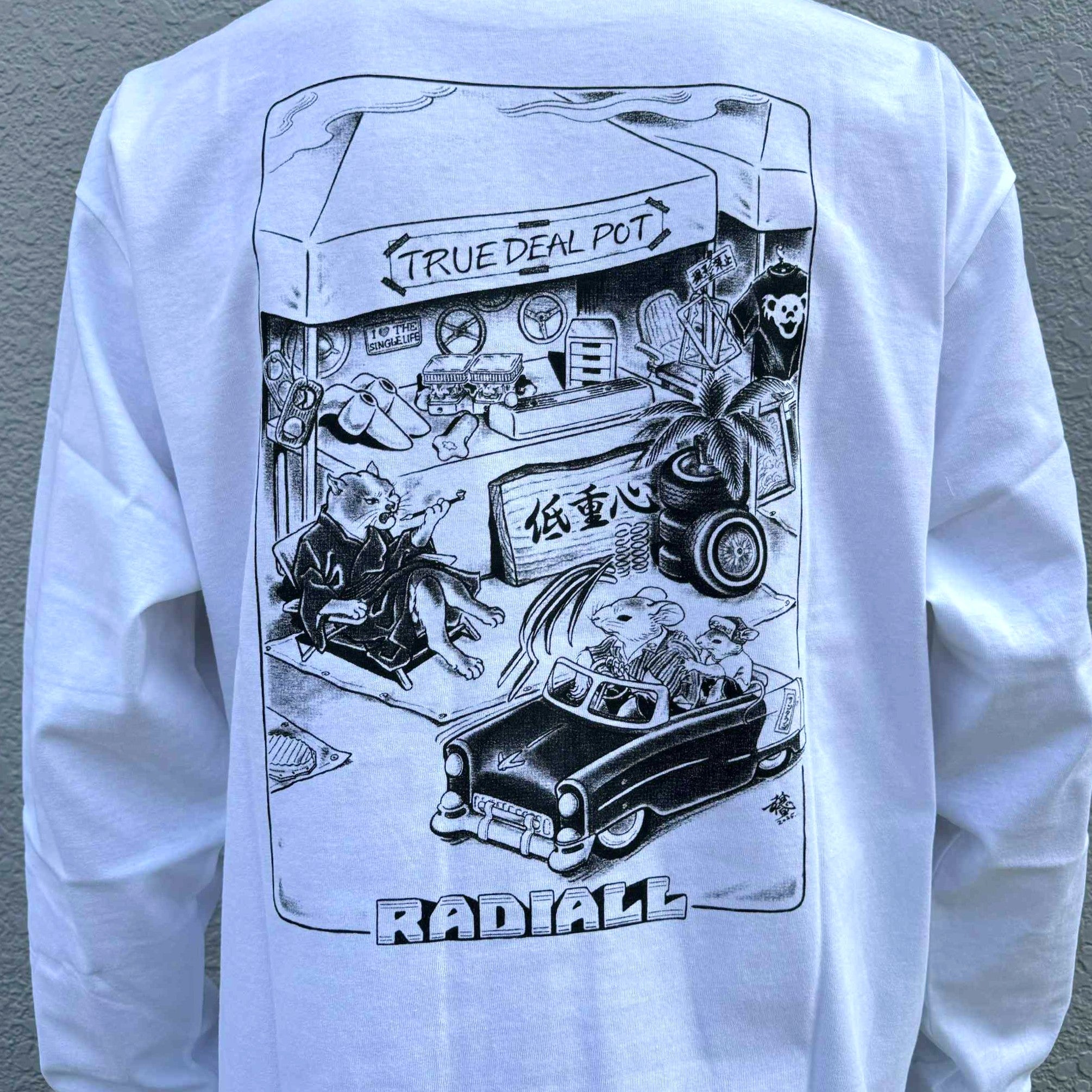 フロントにロゴ、バックに鳥獣人物戯画がスクリーンプリント入り。