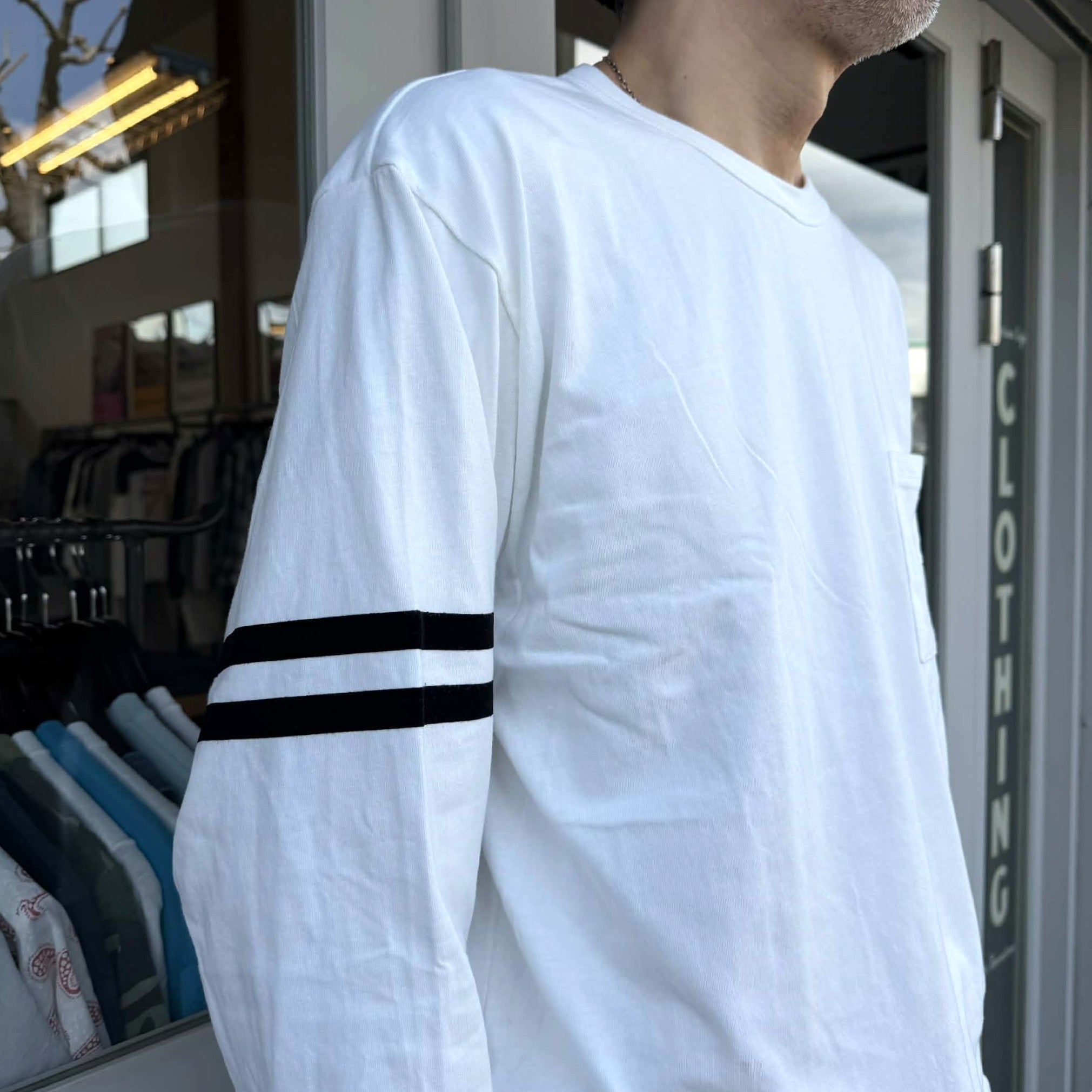 両袖に配した2本のラインはフロッキープリントで表現。