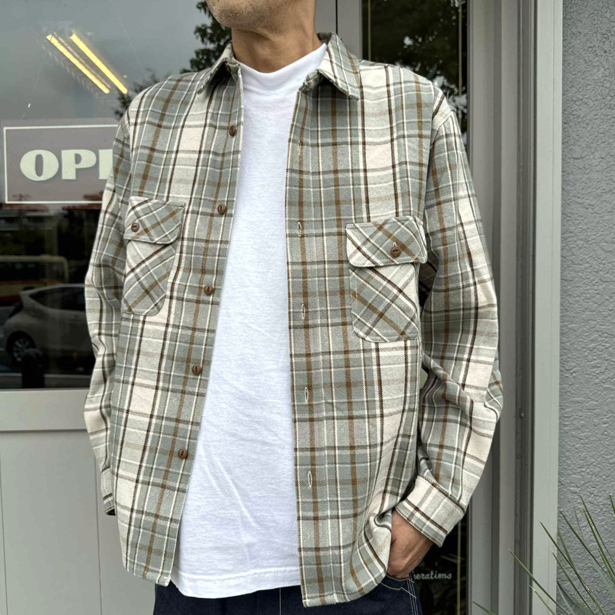 BIGMIKE - HEAVY FLANNNEL SHIRTS - MINT x BROWN x OFF
