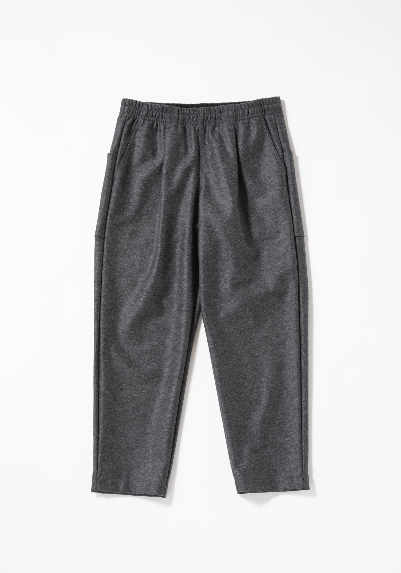 この糸で編み立てた素材はウールメルトンのようなハードな風合いと程よい柔らかさ、